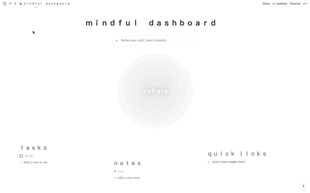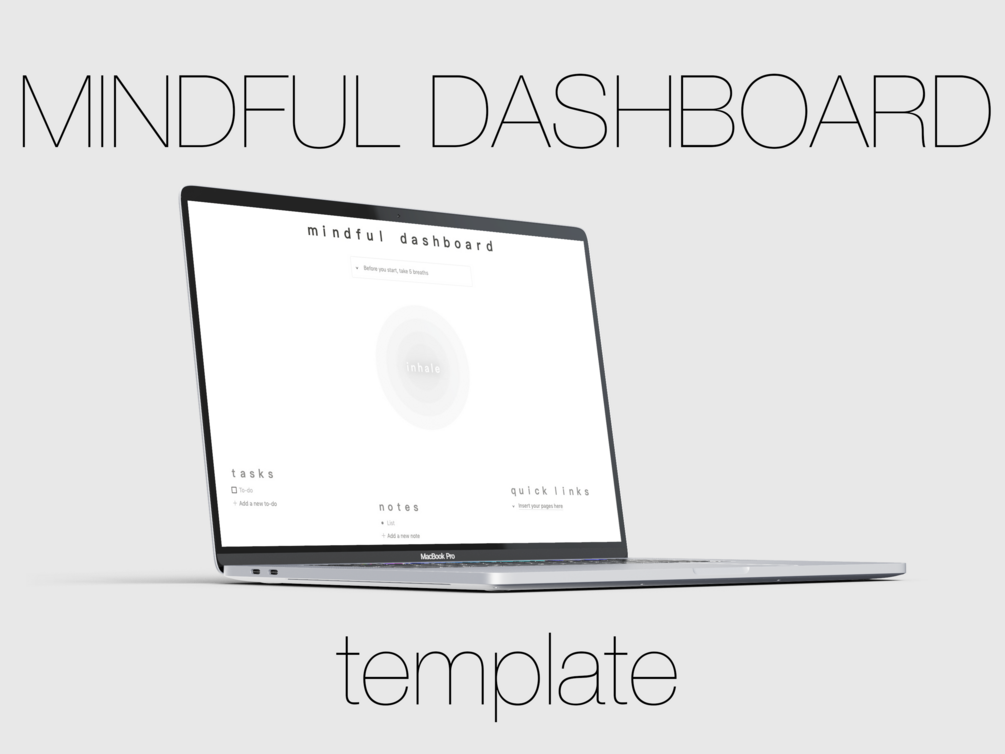 This is a very minimal and simple mindfulness-focused dashboard. It includes a gif for you to breathe to and a calming vibe to it. I hope you enjoy it ♡